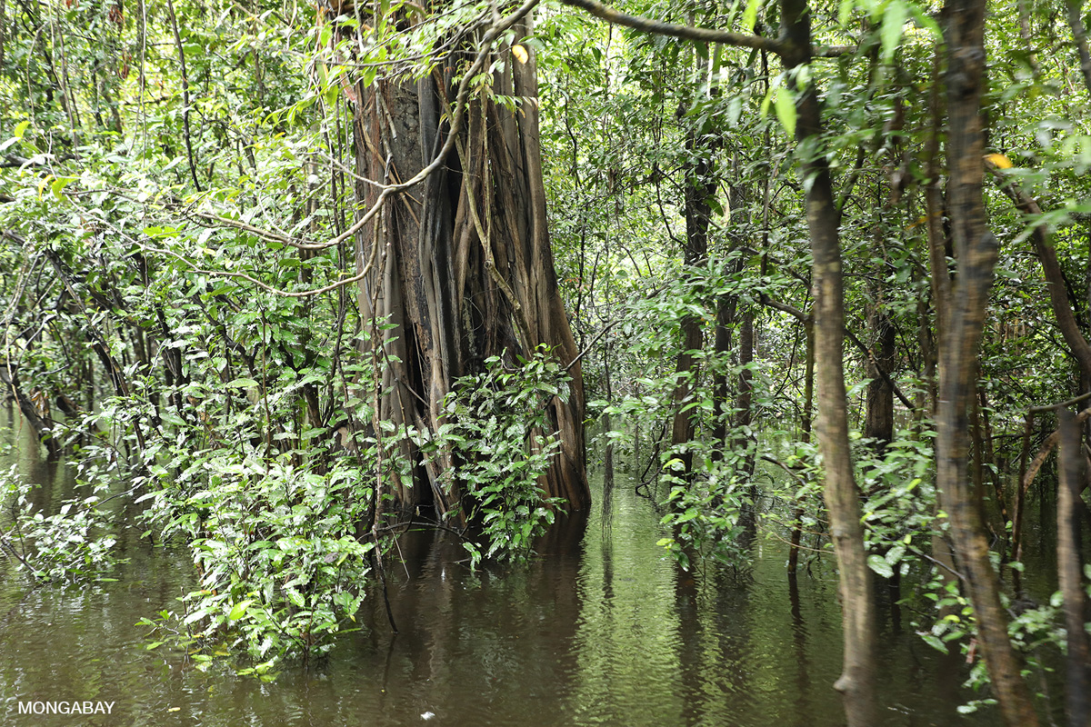 The Amazon River floods its banks and spreads out into the rainforest for several months of the year. When the river flows into the forest, the piranhas go with it. Many species of rainforest trees drop their fruits in the river, and piranhas and their cousins, pacus, chomp up the fruit. A piranha that is full of fruit is also full of the seeds in the fruit. When the piranha poops out the seeds into the flooded forest, it helps spread them to new areas of the forest, where they can grow when the flooded river dries up.